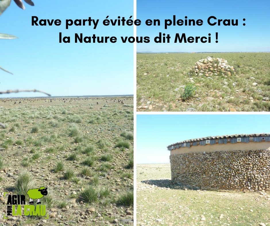 Grace à la mobilisation des pouvoirs publics, des forces de l'ordre, des associations, de la Ville de Saint-Martin de Crau et de la population (le post d'Agir pour la Crau a été vu 12.000 fois), la rave-party prévue ce week-end en pleine Réserve Naturelle de Crau a été évitée. (17.08.20)